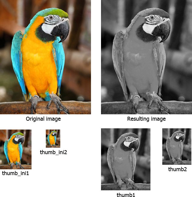 Here we generate one thumbnail of the source image, get the resulting image in .png format and get two thumbnails of